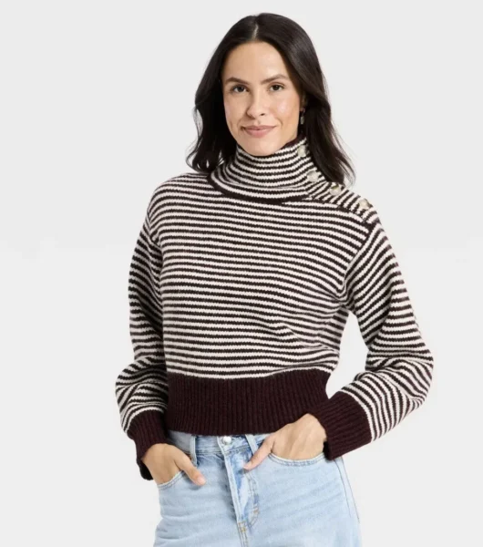 7. burgundy striped pullover sweater