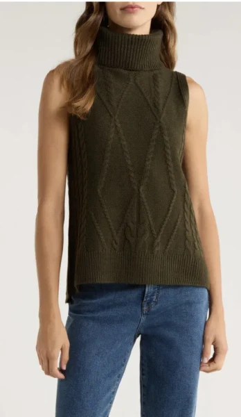 3. cablestitch sleeveless turtleneck sweater